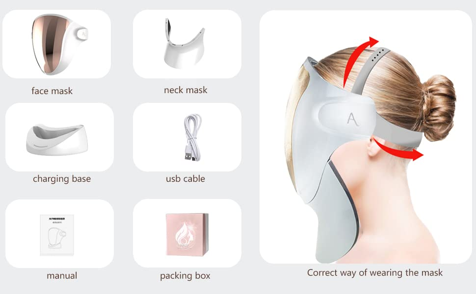 • PATENTED DESIGN WITH FULL FACE AND NECK COVERAGE The eye cover blocks out the lights so that your eyes are protected. The Neck Cover is a patented design that uses magnets to secure to the face mask. Simply line up it with the bottom of the face mask for complete face and neck mask coverage. 1-touch to power on and off the mask. (Please make sure to place one strap at the back of the head and one on top of the head. This way the weight of the mask is evenly distributed.)