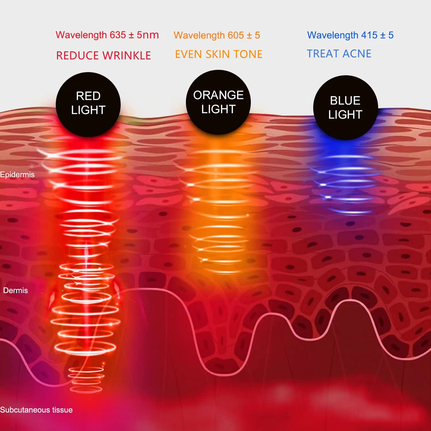 • LED LIGHTS TECHNOLOGY WITH NO DAMAGING RAYS The red LED light penetrates deep into the skin at the cellular level. The LED Face Mask contains 807 LED chips, those lights are strategically placed along T-zone and jaw line, emitting specific wavelength to the deep layer of the skin. Unlike UV light, LED light is safe for consumption, no damaging, non-heat producing, and no side-effects.