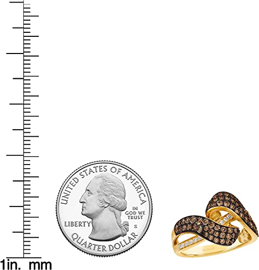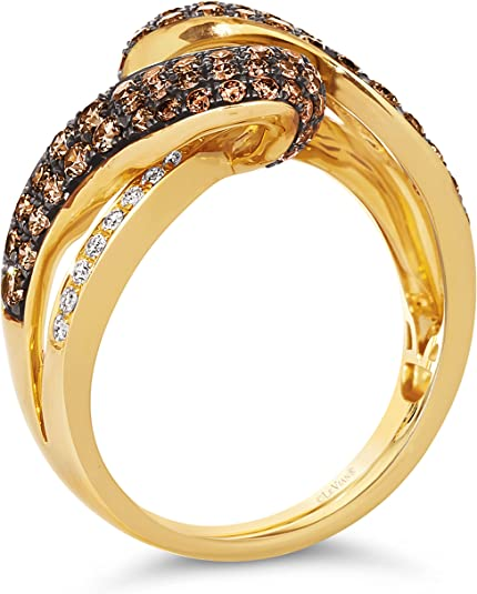 1 1/5 Carat Diamond Asymmetrical Statement Ring for Women in 14k Yellow Gold (Fancy Brown/G-H, VS2-SI1, cttw) Anniversary Promise Ring Size 7 by LeVian
